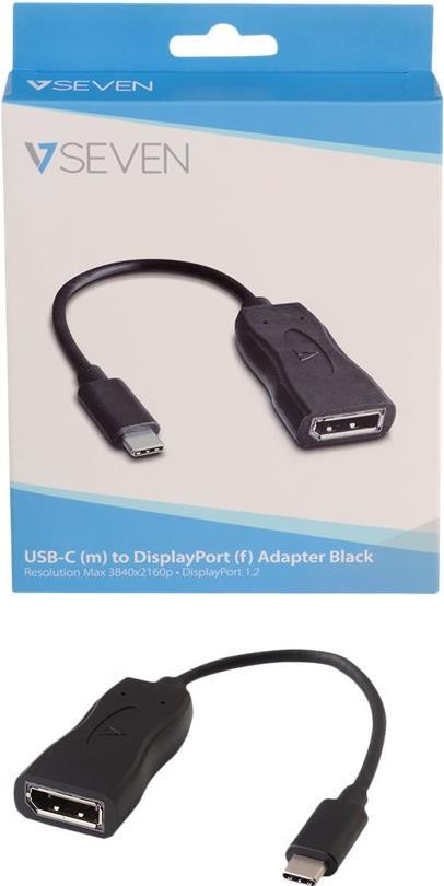 V7 USB-C TO DP ADAPTER BLACK USB C - DisplayPort, male/female, Schwarz (V7UCDP-BLK-1E)