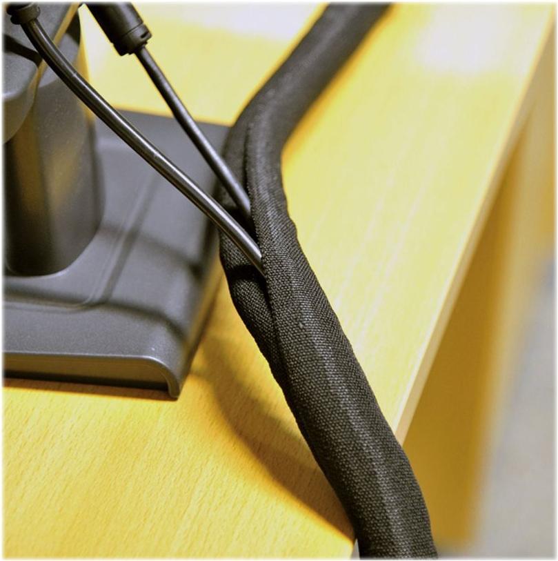 • Gewebeschlauch kann auf die gewünschte Länge zugeschnitten werden und bündelt Kabel bis Durchmesser 25mm