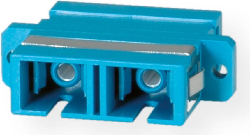 LWL-Kupplung zum Verlängern von LWL-Strecken • LWL-Kupplung zum Verlängern von LWL-Strecken oder zur Montage in Frontplatten • Hülse aus Zirkonium (Z), Kunststoffgehäuse (blau), Singlemode.