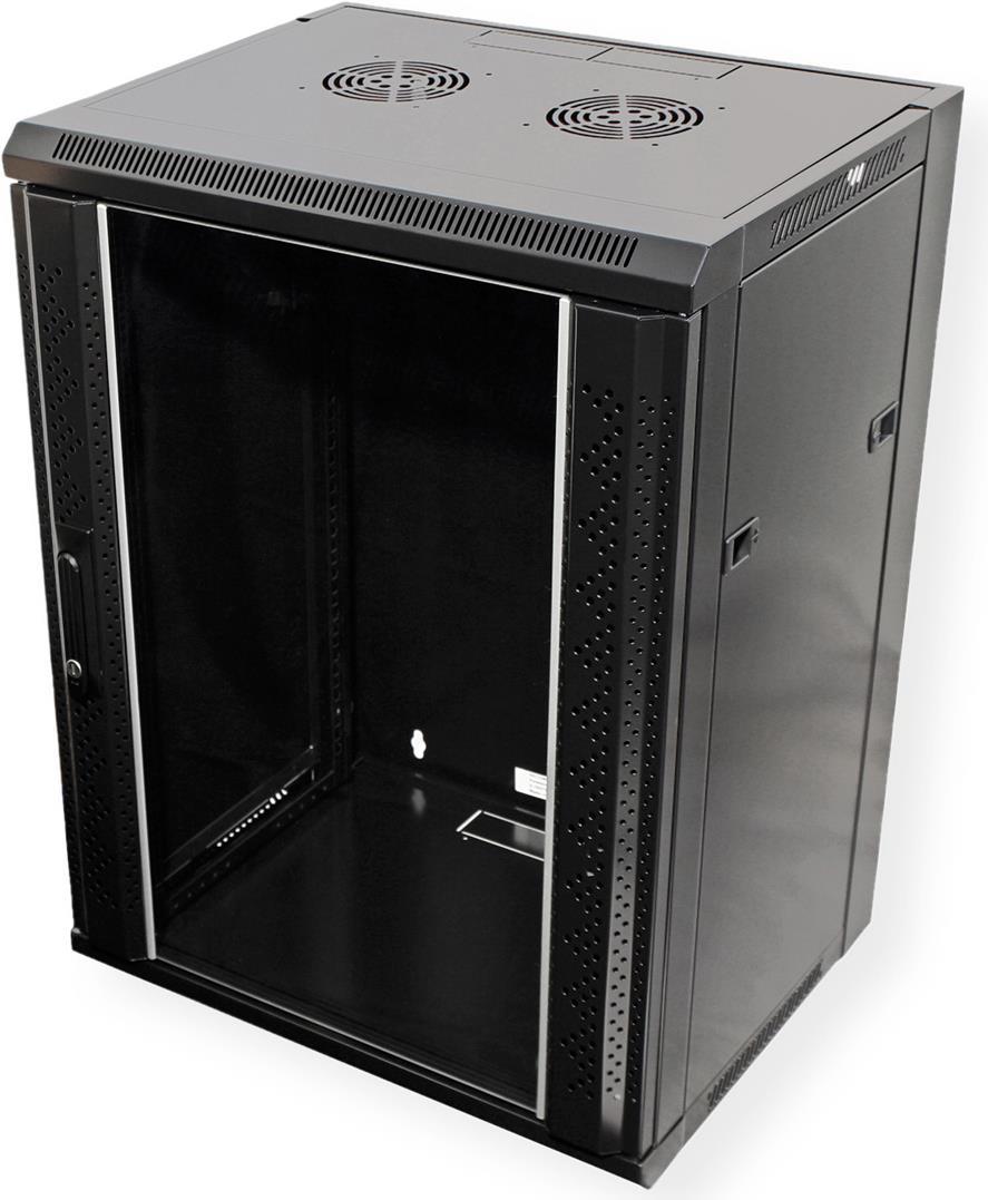 Die VALUE Wandgehäuse beweisen, dass solch praktische Lösungen auch attraktiv sein können. Die schwarzen, leicht glänzenden Gehäuse sind durchaus bürotauglich. Ein großzügiger Glaseinsatz in der Tür erlaubt auch bei geschlossener Tür freien Blick auf alle eingebauten aktiven und passiven Komponenten. Sowohl Tür als auch die Seitenwände können abgenommen werden, was optimalen Zugang ins Gehäuse-Innere ermöglicht; die Kabelzuführung kann von oben oder unten erfolgen. Die Tür der VALUE Wandgehäuse kommt mit abschließbarem Schwenkhebel.