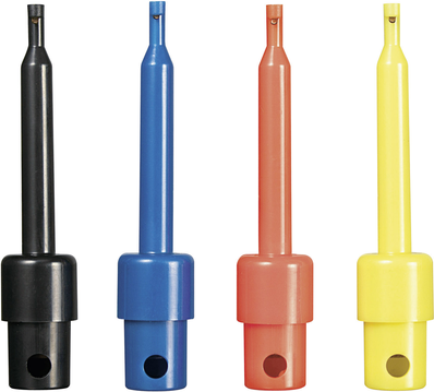 Mini-Prüfspitzen-Set mit 4 verschieden farbigen Prüfspitzen. Speziell für Messungen an Transistoren, Dioden und ICs.