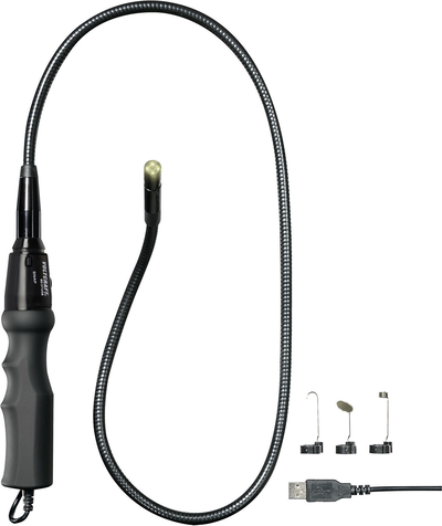 USB-Endoskop BS-17+Wasserdichte USB-Endoskop-Kamera Mit dimmbarer 4-LED-BeleuchtungUSB-Kabellänge 2 mSchnappschuss- und Video-FunktionUSB 2.0Erkunden Sie in Verbindung mit einem Computer mühelos selbst schwer zugängliche Stellen und machen Sie sich überall ein genaues Bild. Der flexible 93 cm lange Schwanenhals ist ideal, um Rohre und Leitungen im Haus oder Auto auf Beschädigung bzw. Korrosion zu überprüfen. Dabei sorgt das dimmbare Kameralicht mit 4 LEDs für die optimale Ausleuchtung. Die Spannungsversorgung erfolgt direkt über die USB-Schnittstelle mit einem 2 m langen USB-Kabel. Eine Schnappschuss- und Video-Funktion ist vorhanden. Hervorragend geeignet für Heimwerker, Bastler und Hobby-Biologen, z.B. um Tierbauten wie Maulwurfgänge oder Vogel-Nistkästen genau zu inspizieren. Ausstattung: Halbstarrer 93 cm langer SchwanenhalsWasserdichte Kamerasonde Ø 8 mmDimmbares LED-Kameralicht2 m langes USB-KabelSchnappschuss- und Video-Funktion.Technische Daten: Biegeradius (max.): 45 mmEndoskop-Besonderheiten: Bild-Funktion, Video-Funktion, LED-Beleuchtung, FokussierungEndoskop-Typ (Kategorisierung): USB-EndoskopFokussierung: 60 mm - 8Gewicht: 300 gKamera-Auflösung: 640 x 480 PixelLichtquelle: 4 LEDs weißProduktabmessung, Breite: 40 mmProduktabmessung, Höhe: 32 mmProduktabmessung, Länge: 1140 mmSichtfeld: 54 °Sonden-Länge: 93 cmSonden-Ø: 8 mmSpannungs-Versorgung: USBUmgebungs-Temperatur: 0 bis +45 °CWeitere technische Daten: Spannungsversorgung: über USB-SchnittstelleLieferumfang: MagnetaufsatzHakenaufsatzSpiegelaufsatzKofferSoftware-CDBedienungsanleitung.Systemvoraussetzungen: Ab Windows® 2000 - Windows® 7Mac OSUSB 2.0 (abwärts-kompatibel)CD-ROM.Hinweis: Zum Betrieb ist ein Computer mit Windows® oder Mac OS erforderlich. Nicht zur Anwendung an Menschen und Tieren geeignet. Für Mac OS ist keine Softwareinstallation notwendig. Das Endoskop funktioniert mit Apple® Photo Booth. Photo-Booth starten und Endoskop über USB anstecken.