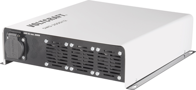 Sinus-Wechselrichter SWD-2000/24Fernbedienung mit Datendisplay anschließbarGalvanisch getrenntUSB-Power-Ausgang2000 W DauerleistungEingang 24 V/DCAusgang 230 V/ACSignal-Ausgangsform(en) SinusDigitaler Wechselrichter mit netzüblicher Sinus-Wechselspannung. Selbst empfindliche Verbraucher können problemlos und störungsfrei betrieben werden. Die microprozessorgesteuerte Elektronik überwacht die wichtigsten Parameter wie stabile Ausgangsspannung, Frequenz und Eingangsspannung. Durch die zuschaltbare StandBy-Funktion kann der Eigenstromverbrauch des Wechselrichters minimiert werden, indem das Gerät nur eingeschaltet wird, wenn der angeschlossene Verbraucher aktiv ist.Ausstattung: Zuschaltbare StandBy-FunktionEingang Verpolungs- und ÜberspannungsgeschütztAusgang Kurzschluss- und ÜberlastgeschütztAbschaltung bei ÜbertemperaturEinstellbarer dynamischer Tiefentladeschutz (18 - 23 V)USB-Ausgang 5 V/DC 500 mAOptionale Fernbedienung anschließbarTiefentladeeinstellung und Datenauswertung über optionale Display-Fernbedienungen (Eingangs-/Ausgangsspannung, Ausgangsleistung, Ein/Aus Betrieb mit Datum und Uhrzeit, speicherbar auf optionale SD-Karte).Technische Daten: Ausgang (Netzgeräte): Schutzkontakt-SteckdoseAusgangsfrequenz: 50 HzAusgangsspannung: 230 V/ACAusgänge (Strom): 1x Schutzkontakt-SteckdoseEingangsspannung (LOV): 24 V/DCEingangsspannungs-Bereich: 24 V/DCEingangsstrom (max.): 124 AEingänge: SchraubklemmenFernbedienung: Ja (optional)Gewicht: 4.8 kgKühlungsart: LüfterLeistung: 2000 WLeistungsaufnahme: 13 VAProduktabmessung, Breite: 334 mmProduktabmessung, Höhe: 88 mmProduktabmessung, Länge: 391 mmSignal-Ausgangsform: Reine SinuswelleSpitzen-Ausgangsleistung: 4000 WStandBy-Aufnahme: 1.3 VATyp (Hersteller-Typ): SWD-2000/24Wechselrichter-Art (Kategorisierung): WechselrichterWechselrichter-Besonderheiten: FernbedienbarWirkungsgrad bei Nennlast: 90 %