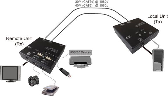 Value KVM Verlängerung über Kat.6 - HDMI - 4x USB 60m - 22 x 84 x 78 mm (14.99.3041)