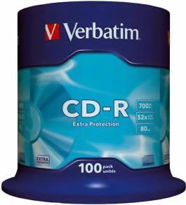 Verbatim - 100 x CD-R - 700MB (80 Min) 52x - Spindel - Speichermedium (43411)