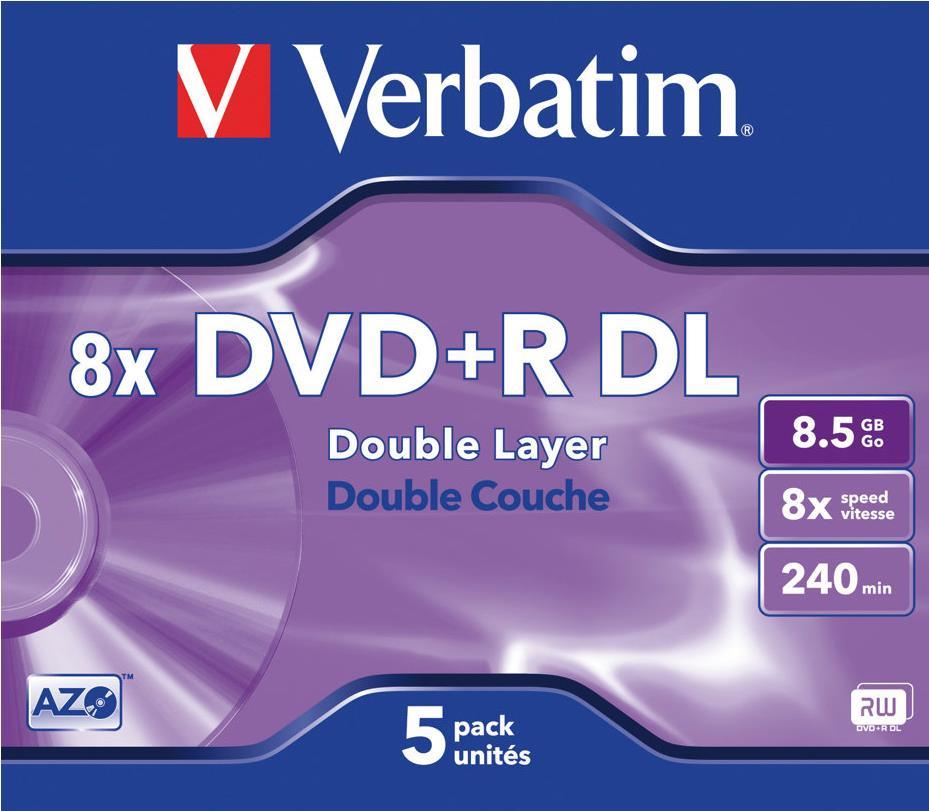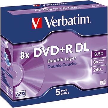 Verbatim - 5 x DVD+R DL - 8.5GB 8x - Jewelcase (Schachtel) - Speichermedium (43541)