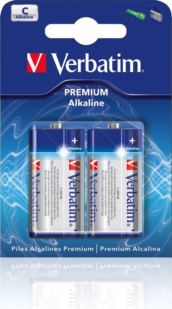 Bei Lichtquellen wie Taschenlampen sind die leistungsstarken Alkalibatterien von Verbatim die optimale Lösung. C-Batterien werden für Geräte wie Taschenlampen und Radios empfohlen.