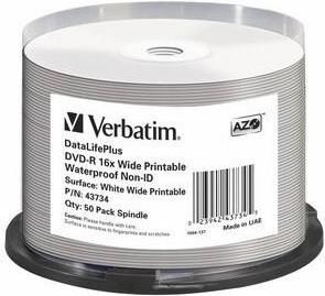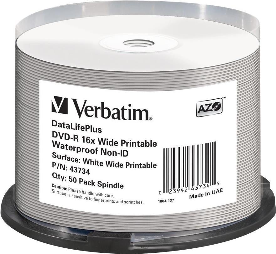 Verbatim DataLifePlus - 50 x DVD-R - 4,7GB 16x - mit Tintenstrahldrucker bedruckbare Oberfläche, breite bedruckbare Oberfläche - Spindel - Speichermedium (43734)