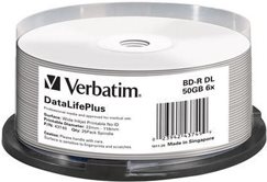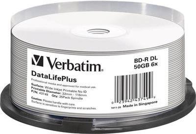 Verbatim DataLifePlus Blu-Ray-Disk - 25 x BD-R DL - 50GB 6x - breite bedruckbare Oberfläche - Spindel - Speichermedium (43749)