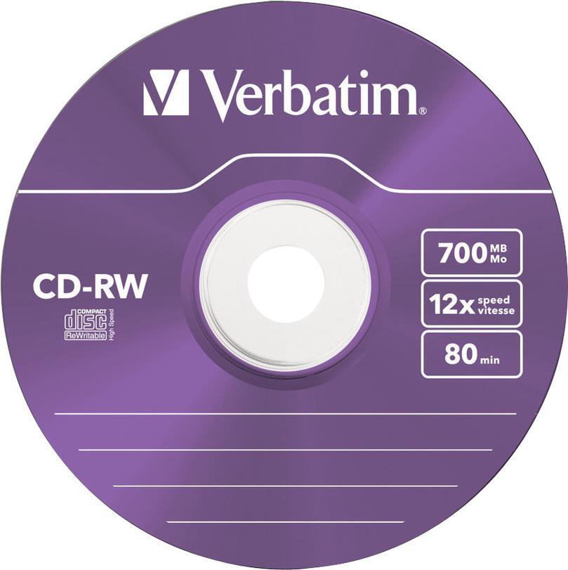 Verbatim Hi-Speed - 5 x CD-RW - 700 MB (80 Min) 8x - 12x - Slim Jewelcase - Speichermedium (43167)