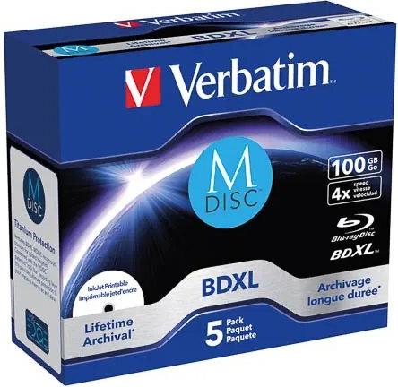 • Verbatim M-DISC BD-R JEWEL CASE 100 GB, 4x, 5er-Pack, Jewel Case, mit Tintenstrahldruckern bedruckbar (43834)
