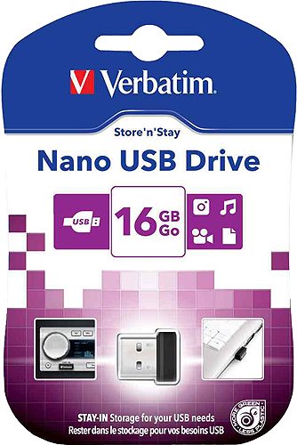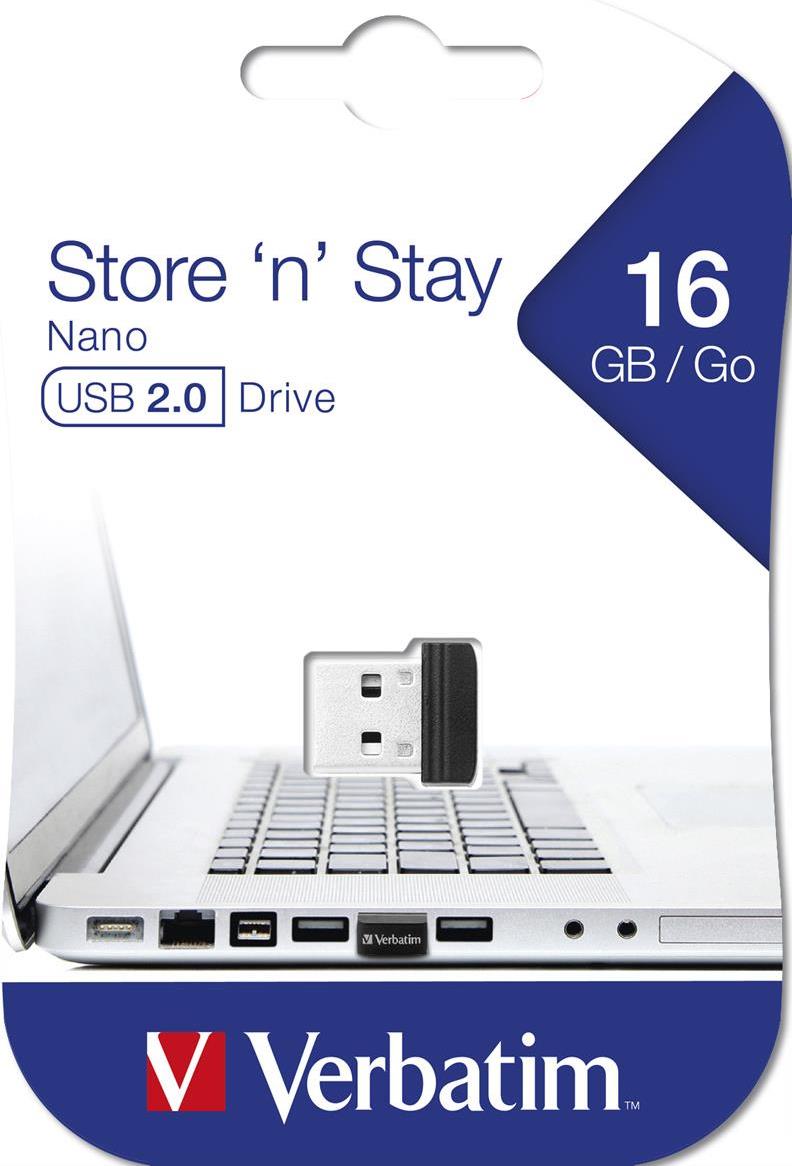 Der NANO USB-Stick von Verbatim hat eine flache Bauweise und eignet sich daher perfekt für die Verwendung mit Geräten, bei denen ein baulich größeres Laufwerk ungeeignet ist.Vom kombinierten Einsatz mit TVs, Medienplayern und Car-Audio-Geräten bis hin zur Speichererweiterung eines Ultrabooks ohne zusätzlichen Platzbedarf - der NANO USB-Stick von Verbatim stellt die perfekte Lösung dar.Bei Anschluss an einen USB-Anschluss ragen lediglich 5 mm des Verbatim Store \'n\' Stay NANO USB-Sticks hervor, d. h. er ist so klein und unauffällig, dass er praktisch dauerhaft eingesteckt bleiben kann.