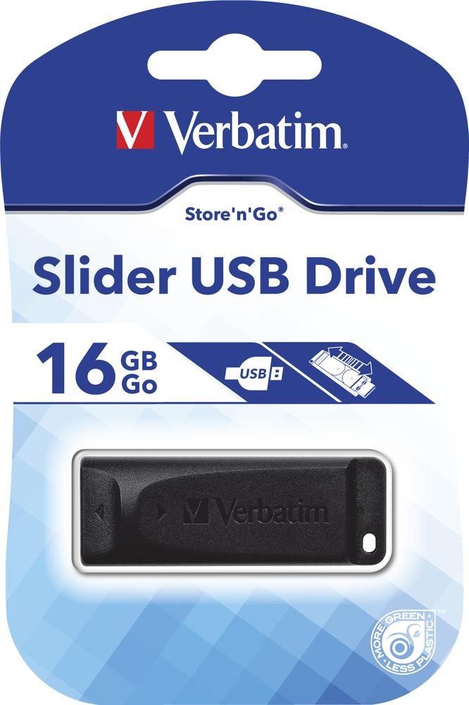 Verbatim USB 16GB - 16 GB - USB 2.0 - 10 MB/s - Slide - Schwarz - 2,1 cm (98696)