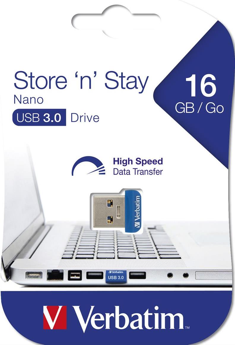 Bei Anschluss an einen USB-Anschluss ragen lediglich 5 mm des Verbatim Store 'n' Stay NANO USB-Sticks hervor, d. h. er ist so klein und unauffällig, dass er praktisch dauerhaft eingesteckt bleiben kann.