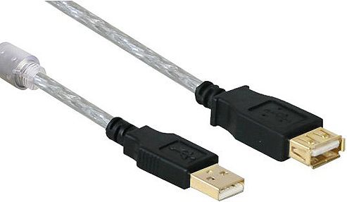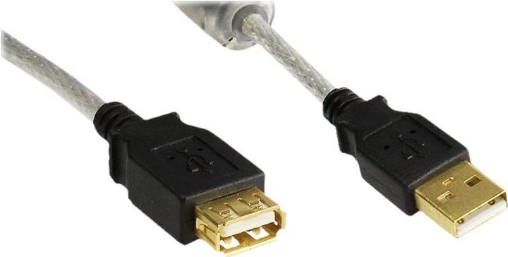 Verlängerung USB 2.0 High Quality mit Ferritkern und Goldkontakten, transparent, 1,8m, Good Connections® (2511-2TQ)
