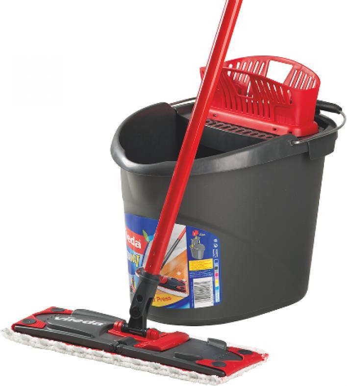 Auch spröde Hände gehören mit dem Vileda UltraMat Komplett-Set der Vergangenheit an: Mit dem UltraMat Eimer mit PowerPresse können Sie den Bezug ganz einfach ohne Bücken und ohne nasse Hände auswringen und dabei die Feuchtigkeit des Bezugs individuell bestimmen. So ist der UltraMat Wischer selbst auf empfindlichen Böden wie Parkett und Laminat bedenkenlos einsetzbar.