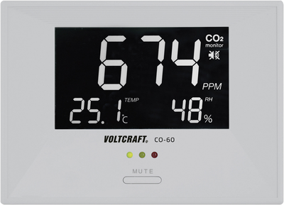 • Voltcraft CO-60 Luftqualitäts-Anzeige für Büro-Räume, Raumluft-Messgerät, CO2-, Temperatur-, und Luf (CO-60)