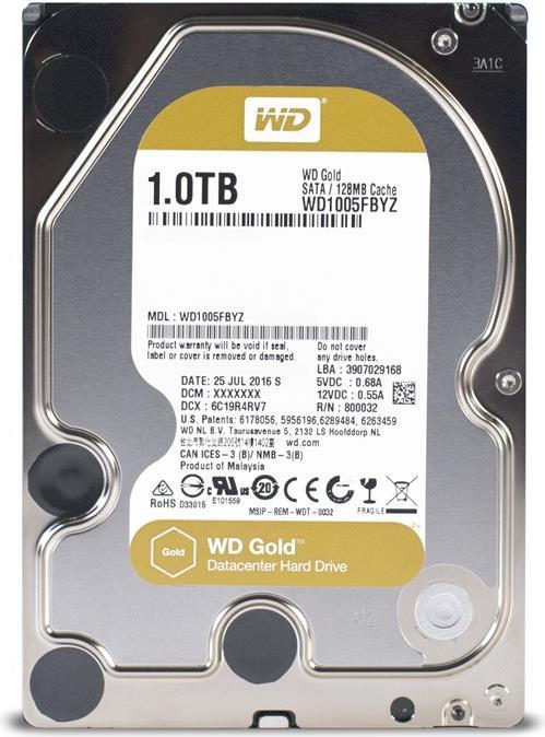 WD Gold 1TB HDD 7200rpm 6Gb/s serial ATA sATA 128MB cache 3.5" intern RoHS compliant Enterprise Bulk (WD1005FBYZ)
