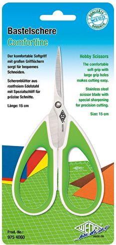 Der komfortable Softgriff der neuen Bastelschere Comfortline sorgt mit seinen großen Grifflöchern für bequemes Schneiden. Der Spezialschliff der spitz zugeschliffenen Scherenblätter aus rostfreiem Edelstahl ...