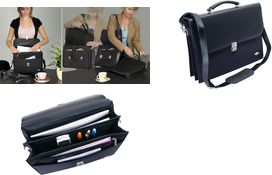 Diese handliche Aktentasche mit gepolstertem Tragegriff und Metallschloss (Lieferung mit 2 Schlüsseln) ist zusätzlich mit einem abnehmbaren und verstellbaren Schultergurt ausgestattet.