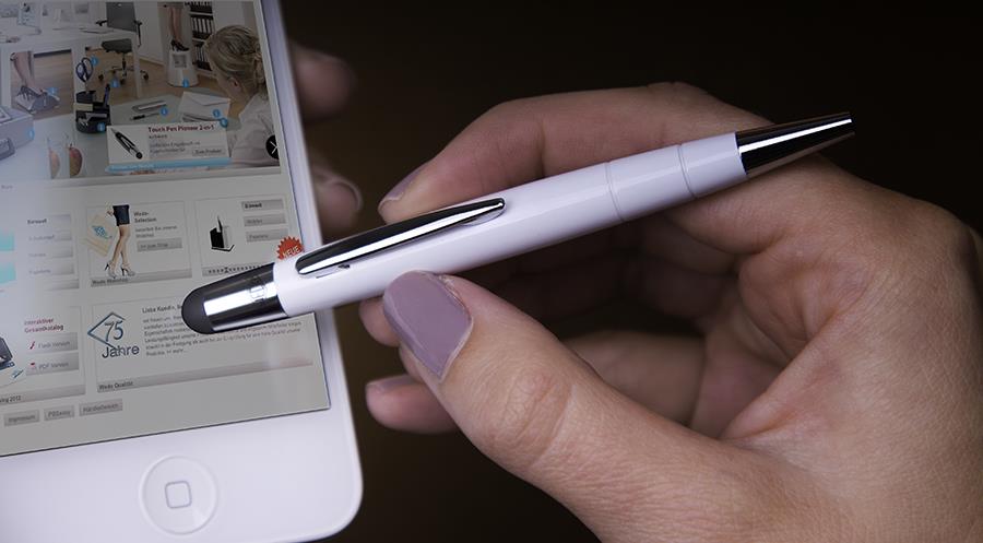 WEDO Eingabestift 2in1 Pioneer Mini, hochglänzend, weiß Touchpen für Smartphones, iPad und Tablet PCs, für exakte - 1 Stück (261 15000)