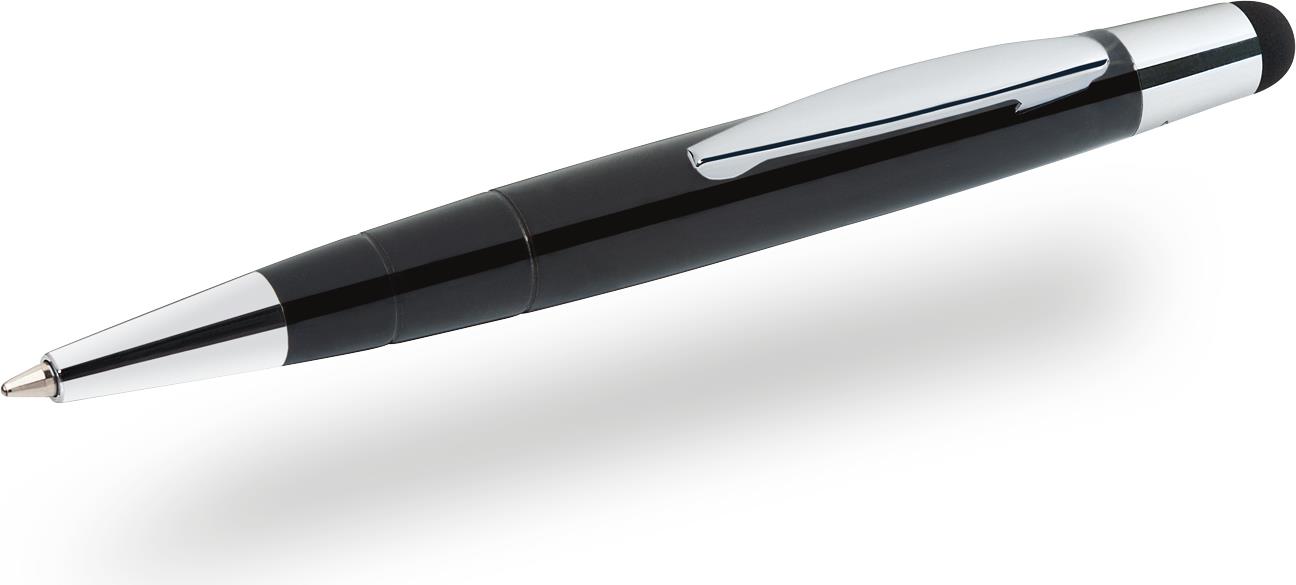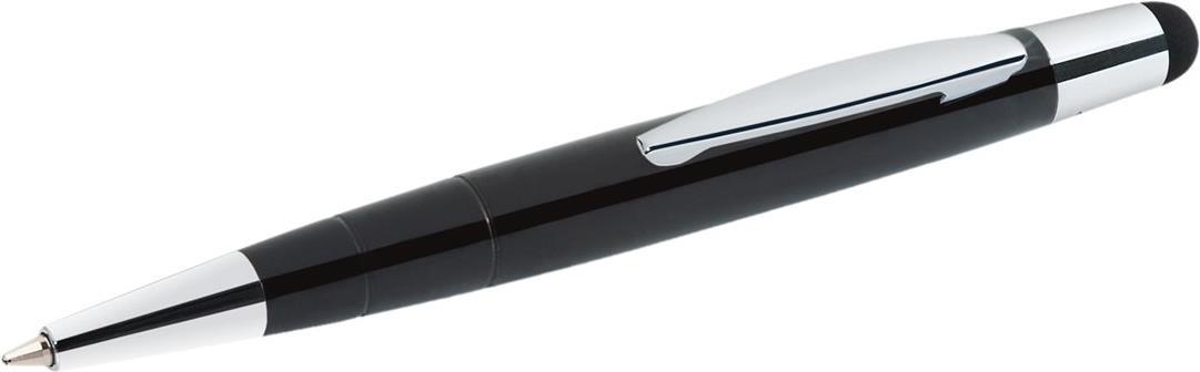 Leitfähiger Eingabestift mit Kugelschreiber für alle Smartphones und Tablet PCs, wie Apple iPhone und iPad. Klein und handlich - nur 10 cm lang. Der ideale Begleiter für die exakte Navigation auf allen Touch Screens. Der weiche Gummiaufsatz ermöglicht das treffsichere Verfassen von Nachrichten und bequeme Navigieren und Scrollen ohne lästige Fingerabdrücke auf dem Display. Funktioniert auch durch Schutz- bzw. Antireflexionsfolien. Mit dem Touch Pen haben Sie gleichzeitig auch immer einen Kugelschreiber zur Hand, ausgestattet mit Drehmechanik, praktischem Clip und einer blauen Metallmine im D1-Format. In sportlichem Design mit zwei horizontalen Gravurlinien auf der hochglänzenden Oberfläche und chromfarbene Zierteile.