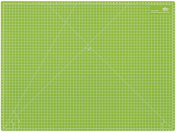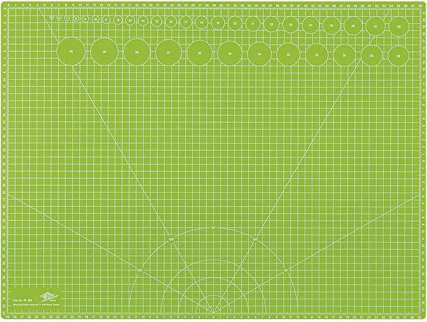 Die robuste Schneidematte ist beidseitig bedruckt mit cm-Raster, verschiedenen Winkeln und Kreisen.