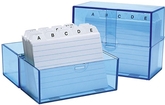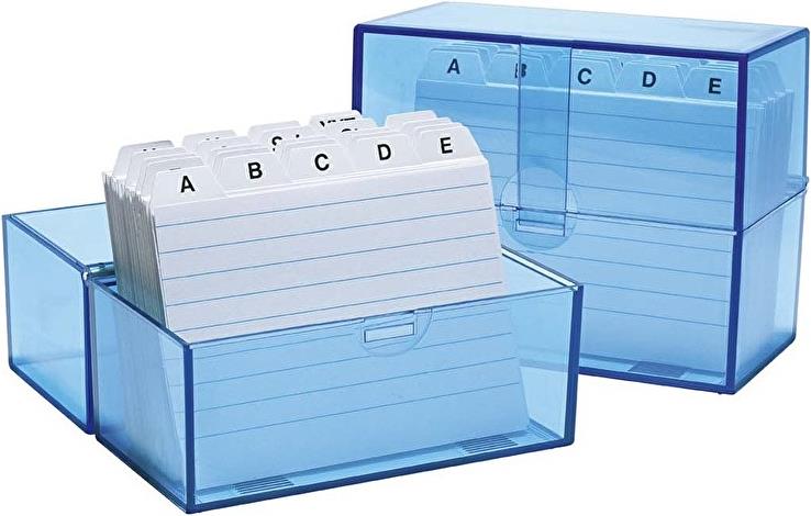 WEDO Karteikasten A7 quer, blau-transparent, bestückt aus Kunststoff, Schnappverschluss, Bodenarretierung (250 7303)