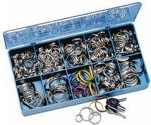 WEDO Metall-Schlüsselringe im 300er Sortimentskasten glanzvernickelte Metallringe aus gehärtetem Stahl, Inhalt: 70x Druchmesser 16 mm/20 mm, 40 x Durchmesser 25 mm, 30x Durchmesser 26 mm flach, je 20x Durchmesser 30 mm - ...