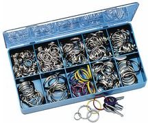 WEDO Metall-Schlüsselringe im 300er Sortimentskasten glanzvernickelte Metallringe aus gehärtetem Stahl, Inhalt: 70x Druchmesser 16 mm/20 mm, 40 x Durchmesser 25 mm, 30x Durchmesser 26 mm flach, je 20x Durchmesser 30 mm - normal, gewellt, farbig, je 10x Durchmesser 35 mm - normal, flach, 10x Durchmesser 38 mm (262 300)