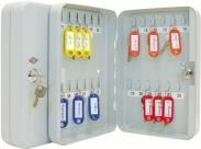 WEDO Schlüsselschrank ist aus Stahlblech für 70 Schlüssel. Die kompakte, sehr flache Form erfordert nur geringen Platzbedarf. Die feststehenden Hakenleisten sind dem Fassungsvermögen entsprechend nummeriert.
