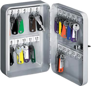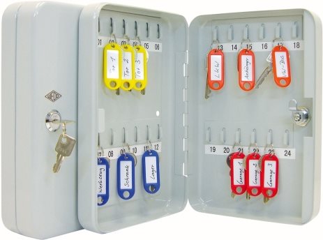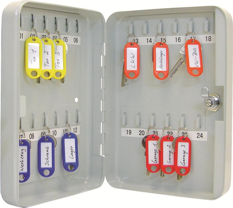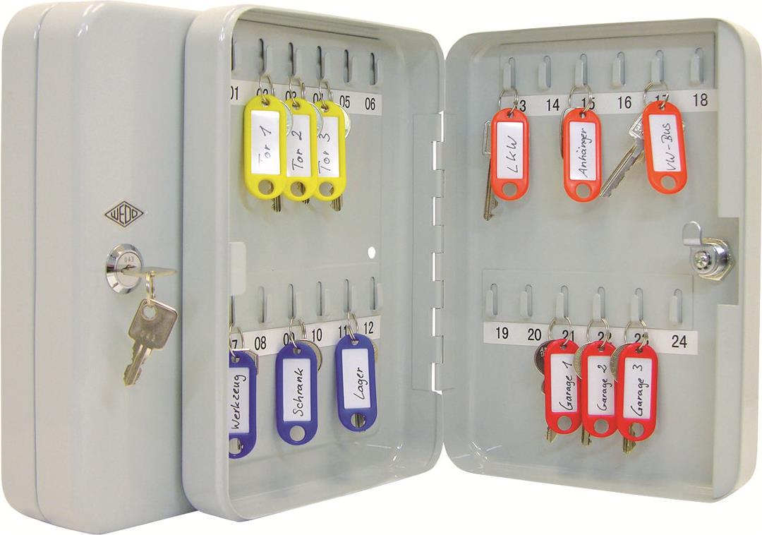 WEDO Schlüsselschrank für 24 Schlüssel, lichtgrau flach, aus pulverbeschichtetem Stahlblech, mit fest- (102 52437X)
