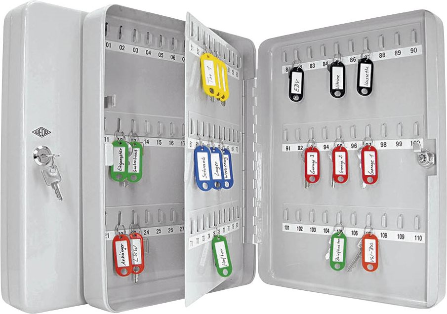 WEDO Schlüsselschrank für 110 Schlüssel, lichtgrau flach, aus pulverbeschichtetem Stahlblech, mit fest- (102 60837X)