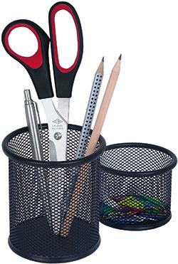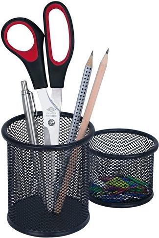 WEDO Stifteköcher-Set Office, aus Drahtmetall, schwarz Drahtmetall pulverbeschichtet, 2-teilig, rund (65401)