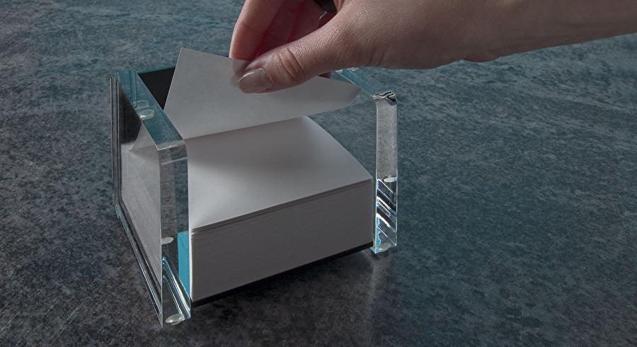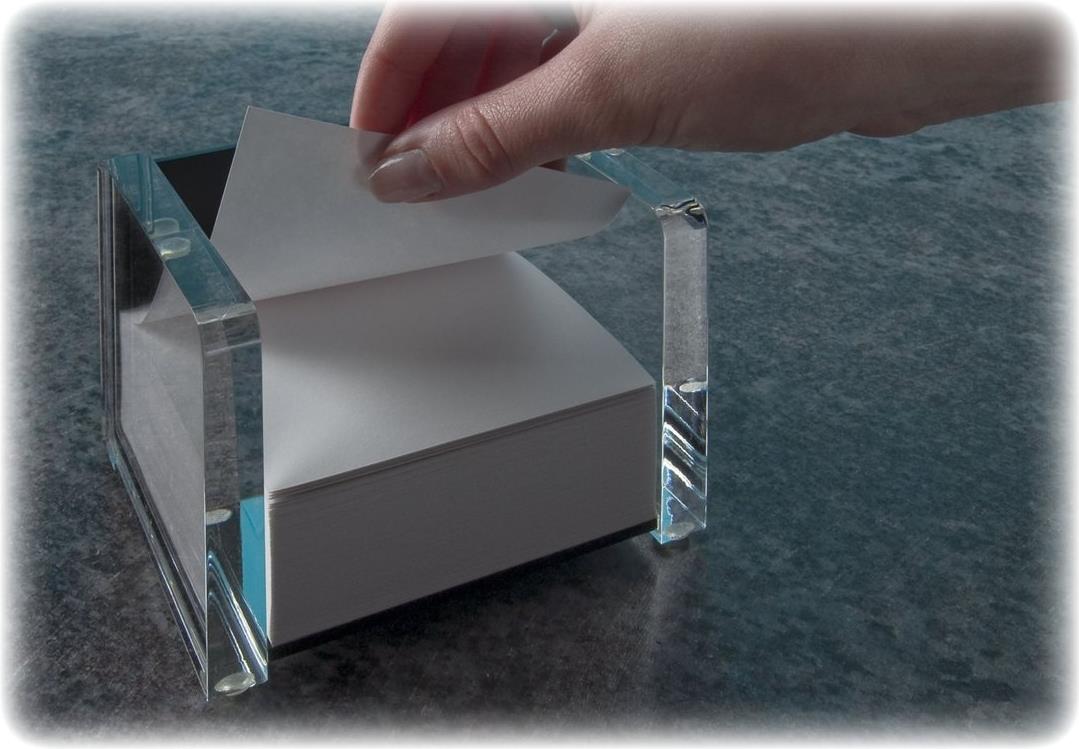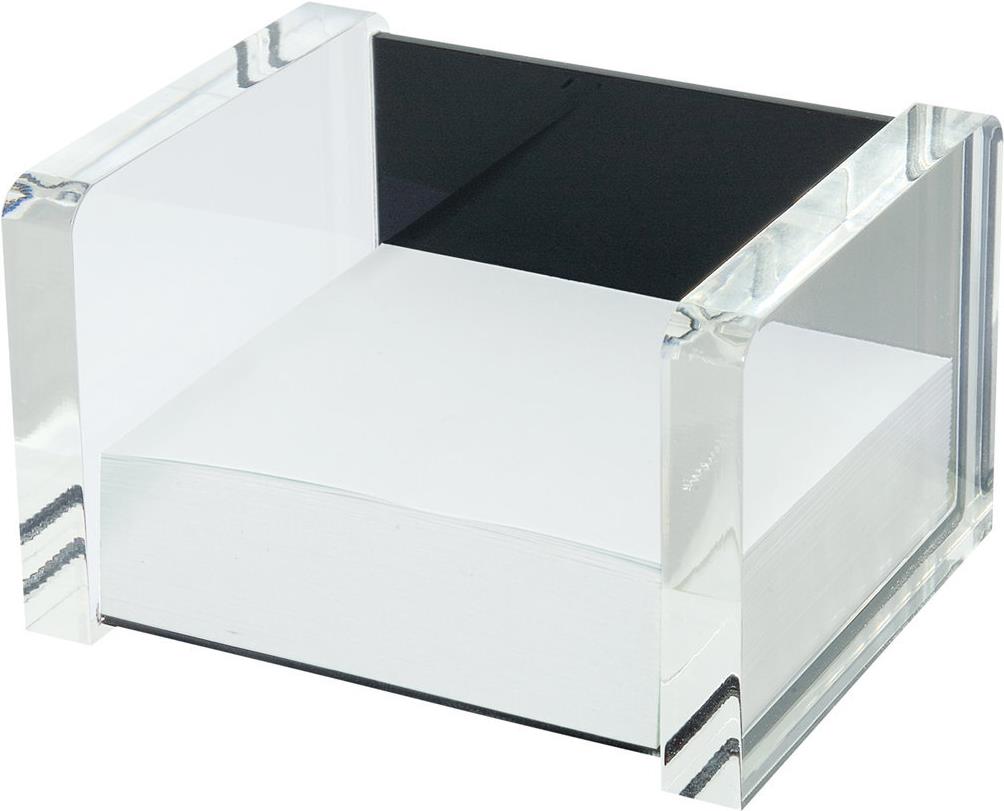 WEDO Zettelbox "acryl exklusiv", glasklar/schwarz aus Acryl, mit 500 Blatt weißem Papier gefüllt (90 x 90 mm) (60 7001)
