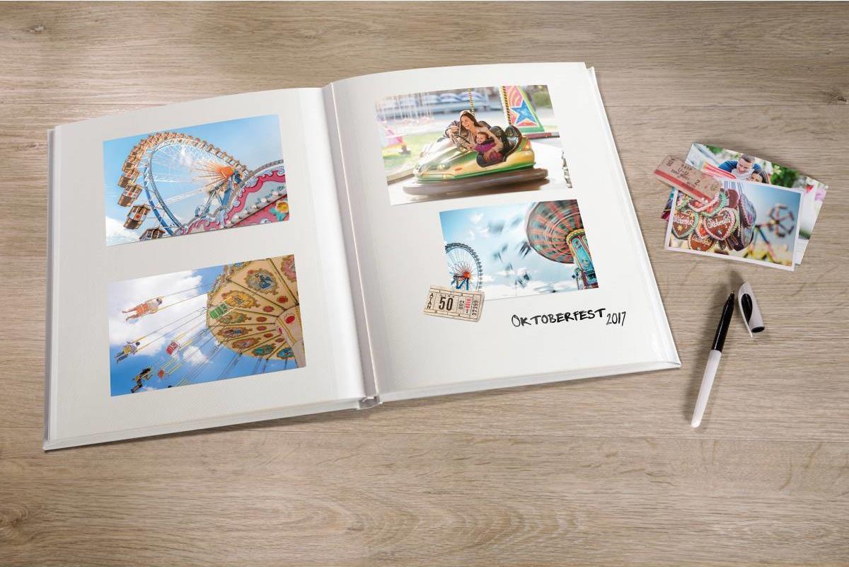 Selbstklebealbum mit weißen Seiten in drei Farben mit