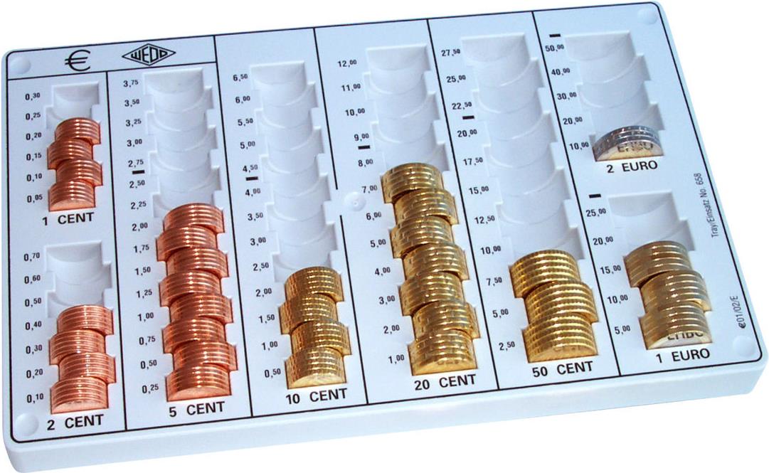 Die versetzt angeordneten Münzfächer und die eindeutigen Markierungen geben einen schnellen Überblick über den Kassenbestand und halten Ordnung in der Schublade.