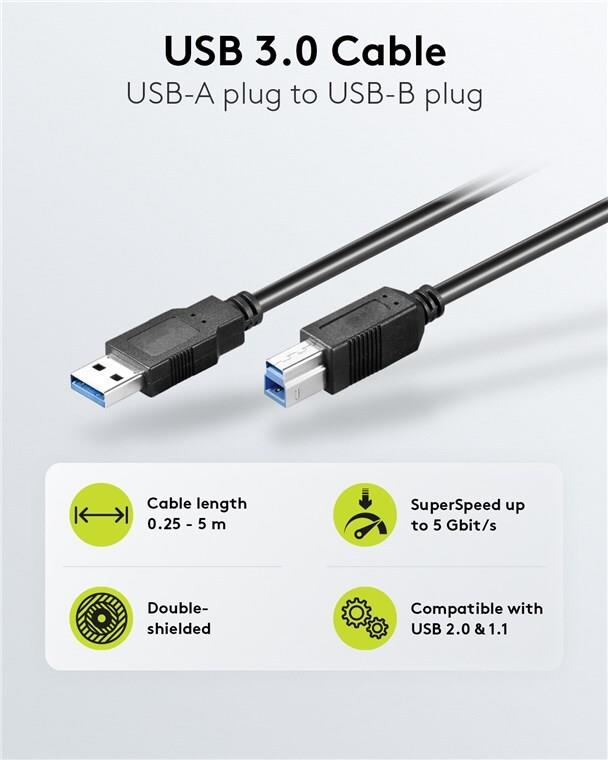 USB 3.0 Kabel "A" Stecker > "B" Stecker.Hauptmerkmale