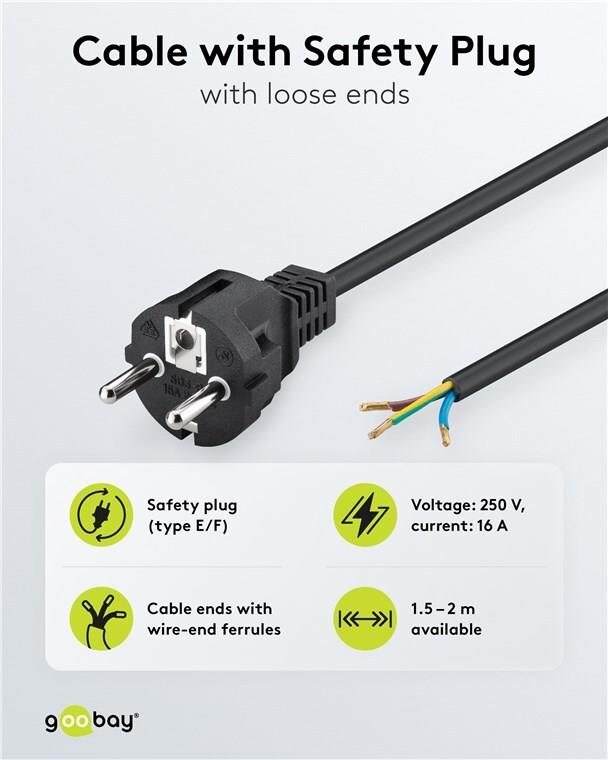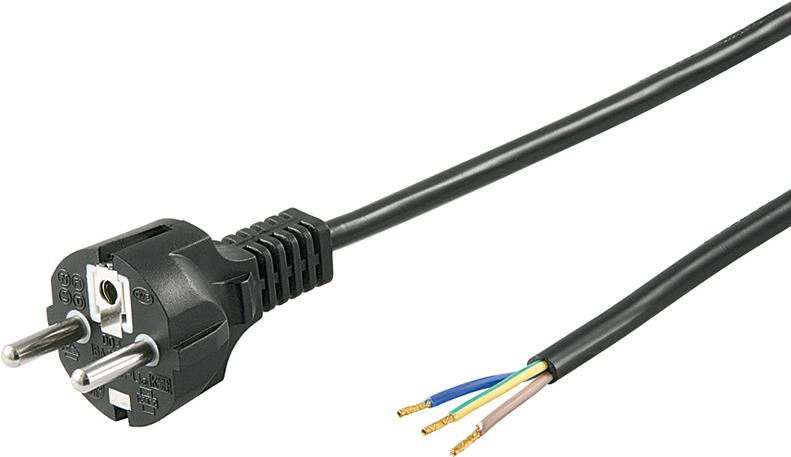 Wentronic Goobay Schutzkontaktkabel zum Konfektionieren, 2 m, Schwarz - Typ F (Typ F, CEE 7/7) > lose Kabelenden (94701)