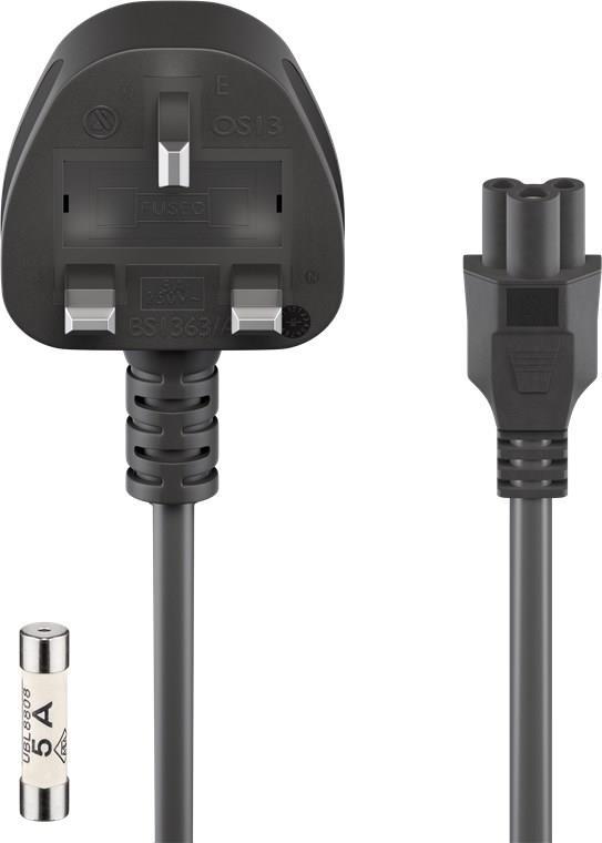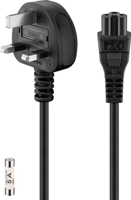 Wentronic Goobay Geräteanschlusskabel Großbritannien, 1,8 m, Schwarz - British 3-Pin-Stecker (Typ G, BS 1363) > Gerätebuchse C5 (96046)