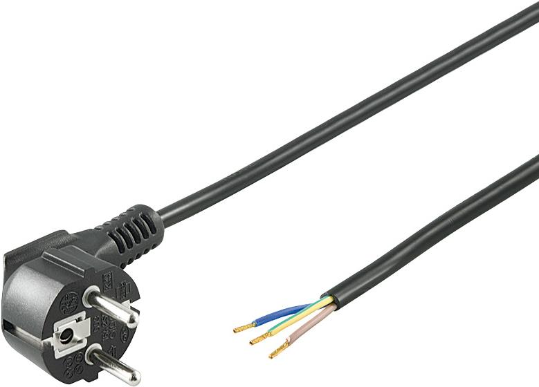 Wentronic Goobay Schutzkontaktkabel abgewinkelt zum Konfektionieren, 5 m, Schwarz - Typ F (Typ F, CEE 7/7) > lose Kabelenden (96034)