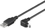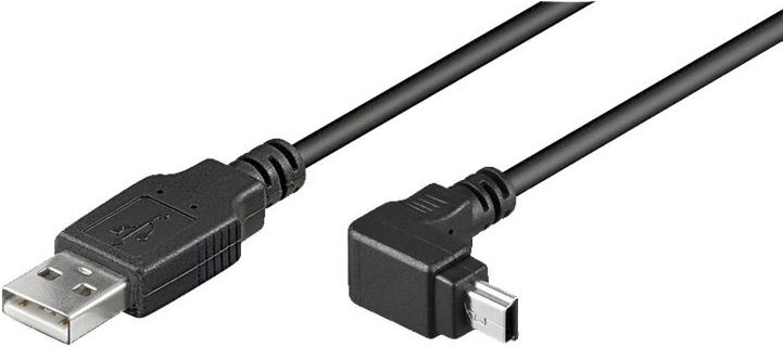 Kabel USB A Stecker zu USB Mini B Stecker. Zum Anschluss z.B. von HUBs, Cardreadern, externen Festplatten oder Digitalkameras an einem PC oder MAC. mit abgewinkeltem B Mini Stecker.