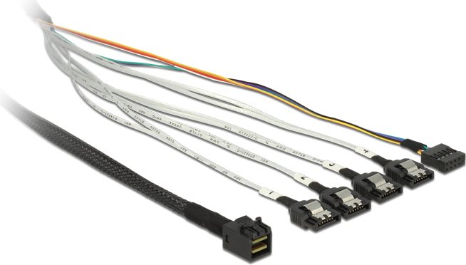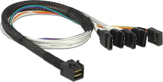 Delock Kabel Mini SAS SFF-8643 > 4 x SATA 7 Pin + Sideband 0,5 m Metall (83315)