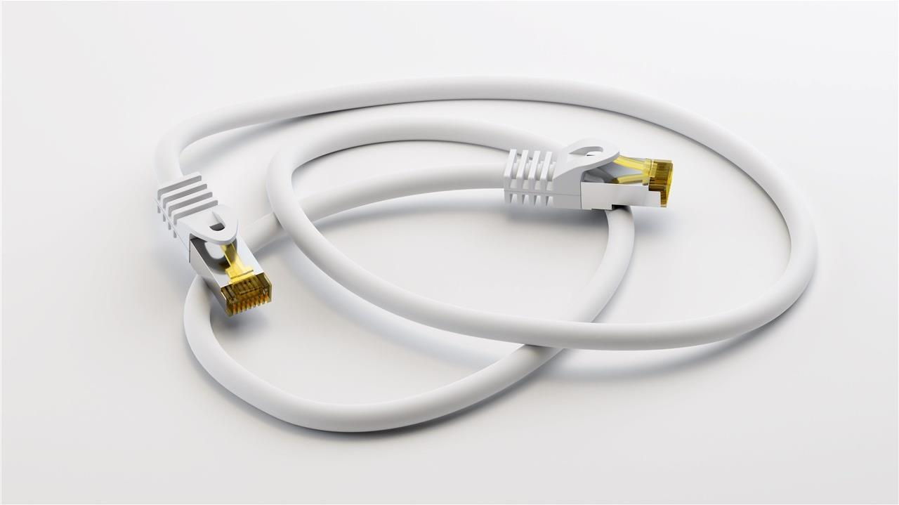Wentronic GoobayCat.7 Rohkabel Patchkabel, S/FTP (PiMF), Weiß, 2 m - LSZH halogenfrei, Kupfer, RJ45 Stecker (91093)