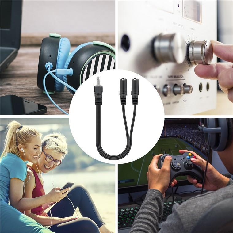 Wentronic Goobay 3,5mm-Klinke-Adapterkabel, Schwarz, 0.2 m - Klinke 3,5 mm-Stecker (3-Pin, Stereo) > 2x Klinke 3,5 mm-Buchse (3-Pin, Stereo) (50464)