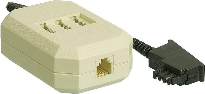 Wentronic Goobay TAE Verlängerungsbox, Beige-Schwarz, 0.2 m - TAE-F-Stecker auf 3 x TAE N/F/N- Buchse und RJ11/RJ14-Buchse (6P4C) (50282)