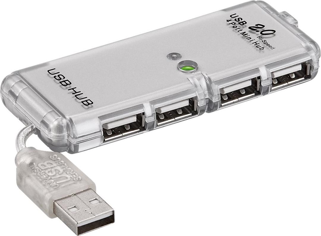 Wentronic Goobay USB 2.0 Hi-Speed HUB / Verteiler 4 Port, Grau - USB Verteiler zum Verbinden von bis zu 4 USB Geräten mit einem USB Anschluss (68879)