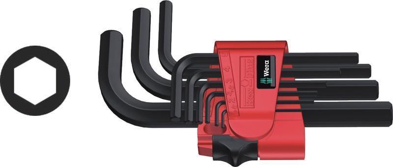 9tlg. 950/9 BM N WinkelschlüsselGestellverchromte kurze Sechskant-Winkelschlüssel. Mit hohem Korrosionsschutz. Winkelschlüssel mit Hex-Plus Vorteil: Größere Anlageflächen zur Vermeidung rundgedrehter Schraubenköpfe.Gelaserte Größenkennzeichnung auf den Winkelschlüsseln.Verschleißfreies Clip-Material für dauerhaft sicheren Halt der Winkelschlüsel bei gleichzeitig einfacher Entnahme. Abriebfeste Größenkennzeichnung für schnellen Zugriff.Ausstattung: Gestellverchromte kurze Sechskant-Winkelschlüssel. Wera Winkelschlüssel übertragen hohe Drehmomente. Das Wera Know-how in Bezug auf toleranzarme Fertigung, sorgfältige Materialauswahl und ausgefeilte Härtetechnik garantiert bestmögliche Sicherheit am Arbeitsplatz - auch bein hohen Drehmomenten.Hex-PlusInnensechskantschrauben haben das Problem, schnell \"\"rundgedreht\"\" zu werden. Grund ist die Einwirkung der scharfen Kante des Werkzeugs auf die Innenfläche des Schraubenkopfs. Der allmähliche Abnutzungsprozess führt schließlich zum \"\"Runddrehen\"\" der Schraube.Hex-Plus Winkelschlüssel von Wera haben größere Anlageflächen im Schraubenkopf und verringern so die zerstörende Kerbwirkung auf Schraubenköpfe.Gleichzeitig können bis zu 20 % höhere Drehmomente übertragen werden. Bei Innensechskant-Winkelschlüsseln erlaubt die Kugel am langen Schenkel sicheres Arbeiten auch in schwierigen Einbaulagen. Gestellverchromte Sechskant-Winkelschlüssel – mit hohem Korrosionsschutz.Alle Winkelschlüssel von Wera sind durch ihre gelaserte Größenkennzeichnung schnell zur Hand.Technische Daten: Abtrieb: Innen-SechskantGewicht: 251.6 gMaterial-Eigenschaft: brüniertProduktabmessung, Länge: 355 mmSchlüsselweite (Metrisch): 1.5 mm, 2 mm, 2.5 mm, 3 mm, 4 mm, 5 mm, 6 mm, 8 mm, 10 mmSchraubendreher-Art (Kategorisierung): Winkelschraubendreher-SetSchraubendreher-Besonderheiten: KugelkopfLieferumfang: 950 BM 1 x 1,5x45 1 x 2,0x50 1 x 2,5x56 1 x 3,0x63 1 x 4,0x70 1 x 5,0x80 1 x 6,0x90 1 x 8,0x100 1 x 10,0x112
