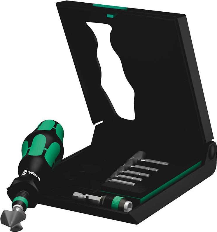 3-nutiger Kegelsenker Bitsatz 8-teilig zum Entgraten, FasenAusstattung: ¼“-Antrieb passend für Halter nach DIN 3126-D 6,3 (ISO 1173). Mit 3 Schneiden. Mit Rapidaptor-Schnellwechselhalter zur Aufnahme in die Schraubermaschine oder zum Einsatz in das Bohrfutter der eletronischen BohrmaschineSehr gute Kraftübertragung durch Sechskant-SchaftFein abgestimmte Material-Elastizität für hohe StandzeitenSehr gute ZentriereigenschaftenProblemloses SchneidenEinwandfreie SpanabfuhrGeringe VerkantungsgefahrPräzise RücklaufführungHoher Korrosionsschutz.Technische Daten: Bohrer-Besonderheiten: inkl. HandentgraterBohrer-Typ (Kategorisierung): Kegelsenker-SetDIN-Norm: DIN 335 Form C, DIN 3126Durchmesser (Senker): 6.3 mm, 8.3 mm, 10.4 mm, 12.4 mm, 16.5 mm, 20.5 mmGewicht: 125 gInhalt: 1 SetMaterial (Bohrer): HSSMaterial-Eignung: MetallWerkzeugaufnahme (Bohrer): 1/4\"\" (6.3 mm)Winkel: 90 °Lieferumfang: 1 Handhalter Kraftform mit Schnellwechselfutter. 1 Universalhalter Rapidaptor. Je 1 Kegelsenker-Bit 6,3x31mm / 8,3x31mm / 10,4x34mm / 12,4x35mm / 16,5x40mm / 20,5x41mm.