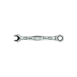Hochwertiger, metrischer Ringratschen-Maulschlüssel von Wera: Alles, was ein Schlüssel können muss. Und noch viel mehr. Schneller, besser, schöner. Eben ein echter Joker. Die neue Generation der Maul-Ringratschen-Schlüssel. Für Sechskant-Schraubenköpfe bzw. -Muttern. Mit Haltefunktion durch Metallplatte im Maul, die die Gefahr des Verlierens von Schrauben und Muttern reduziert. Die auswechselbare Metallplatte im Maul sichert mit extra harten Zähnen Schrauben und Muttern und reduziert die Abrutschgefahr. Der integrierte Endanschlag kann das Abrutschen vom Schraubenkopf nach unten verhindern und ermöglicht das Aufbringen hoher Drehmomente. Die Doppelsechskantgeometrie sorgt für die formschlüssige Verbindung mit Schraube oder Mutter und damit für die Verringerung der Abrutschgefahr. Ein Rückschwenkwinkel von nur 30° auf der Maulseite vermeidet zeitintensives Wenden des Schlüssels beim Schrauben. Ratschenmechanik auf der Ringseite mit außergewöhnlich hoher Feinverzahnung von 80 Zähnen für Flexibilität auch in engen Bauräumen. Die spezielle Schmiedegeometrie sorgt für hohe Drehmomentübertragung und hohe Biegungssteifigkeit. Gefertigt aus leistungsfähigem Chrom-Molybdän-Stahl mit Nickel-Chrom Beschichtung für hohen Korrosionsschutz. Mit Werkzeugfinder "Take it easy": Farbkennzeichnung nach Größen.